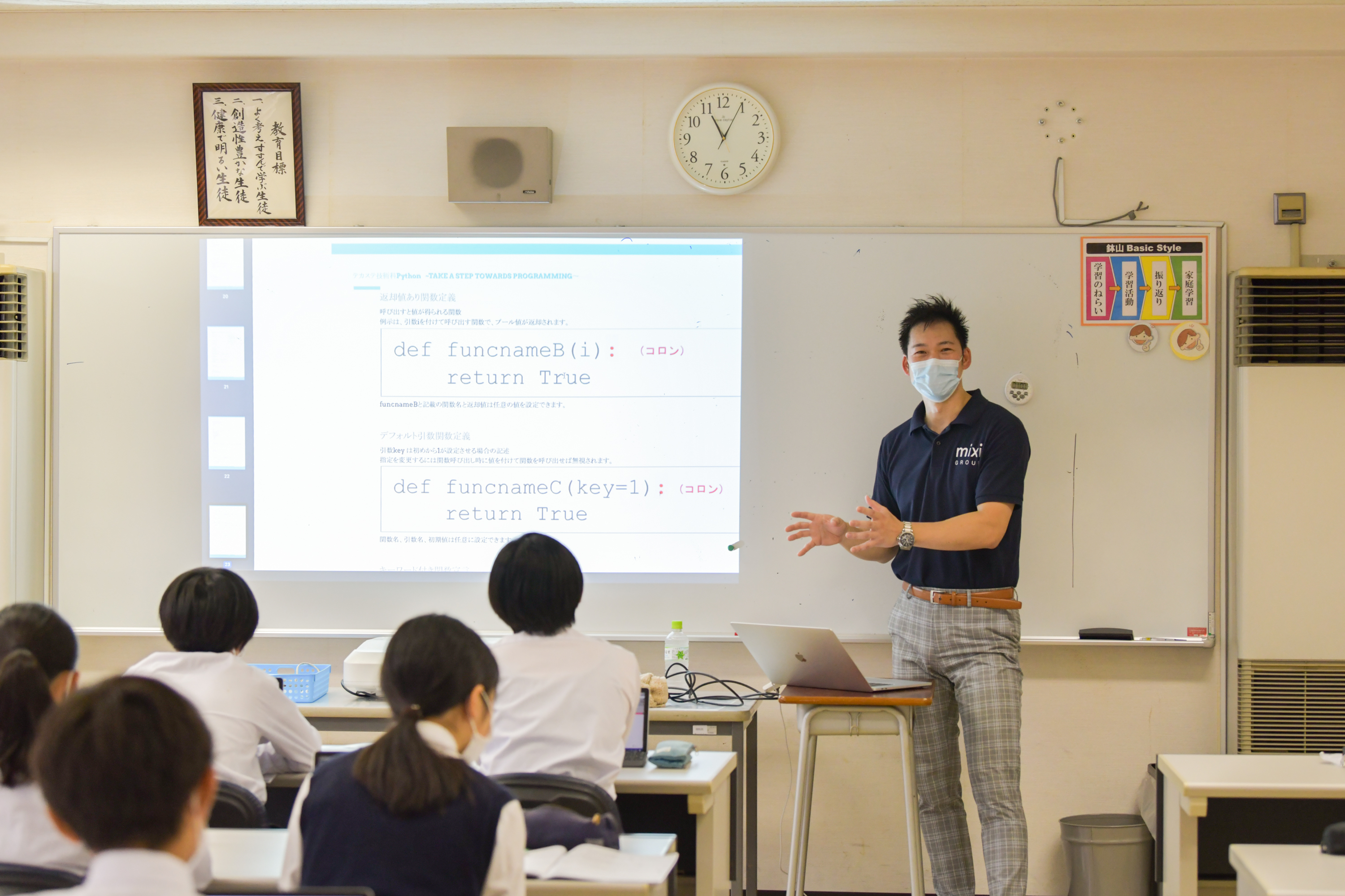 - MIXIは、サステナビリティ推進活動の一環としてプログラミングの知見を活用した学校教育支援と地域貢献活動に取り組んでおり、渋谷区立全中学校の授業や渋谷区部活動、渋谷区内の一部の私立中学校などにもプログラミング教育支援を実施しています。本プロジェクトでも使用しているミクシィ独自の「Python実践ソフトウェア」はPythonのテキストプログラミングをごく簡単に視覚的にも楽しく実践できるソフトウェアで、文法の練習のほかに課題モードで3D制御や、開発モードでのオリジナルアプリ作品制作も可能となっています。